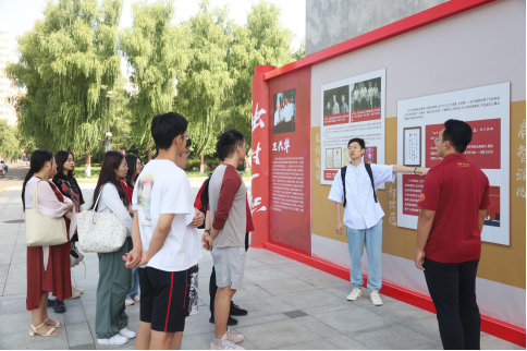 宣讲团成员魏争争、孟博远为2023级本科新生讲解展览