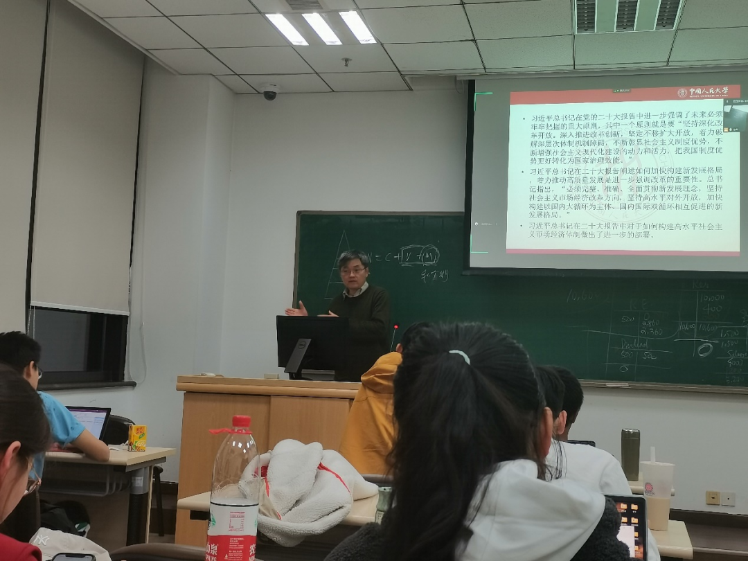 在迈向现代化新征程的重要关头,我们新时代团员青年生逢其时,施展才干的舞台无比广阔,实现梦想的前景无比光明。从个人角度而言,作为毕业生的我们,要找准自己的赛道,将个人的前途和国家命运紧密结合,让青春在全面建设社会主义现代化国家的火热实践中绽放绚丽之花。从集体角度而言,“团结奋斗”这一贯穿党的二十大报告的主题词,指示我们在面对新时代新征程上的惊涛骇浪时,要团结成“一块坚硬的钢铁”,站在潮头,迎着风浪、迎着机遇前进;要厚植经院的红色基因,继承创新品格,以更加强烈的历史主动精神,承担起寻找中国经济学、构建新时代中国特色社会主义政治经济学的历史使命,奋力实现中华民族伟大复兴的中国梦。新征程是充满光荣和梦想的远征。作为经数实验班的学生,我们要牢记习近平总书记的叮嘱,在扎实的经济学基础训练的基础上,用好数学建模工具,积极参与社会实践,用脚步丈量祖国大地,用眼睛发现中国精神,用耳朵倾听人民呼声,用内心感应时代脉搏,踔厉奋发、勇毅前行,努力创造更加灿烂的明天。